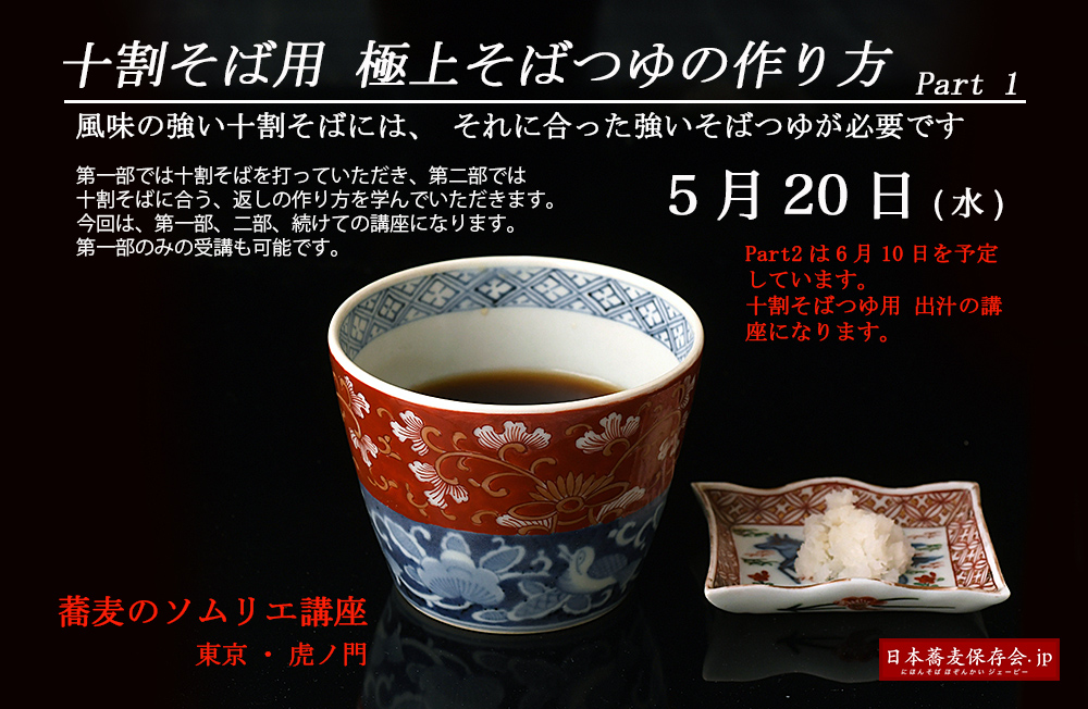 【5月20日は、久々のそばつゆ講座です。ここでしか学べない、極上のおいしさの秘密を修得してください】