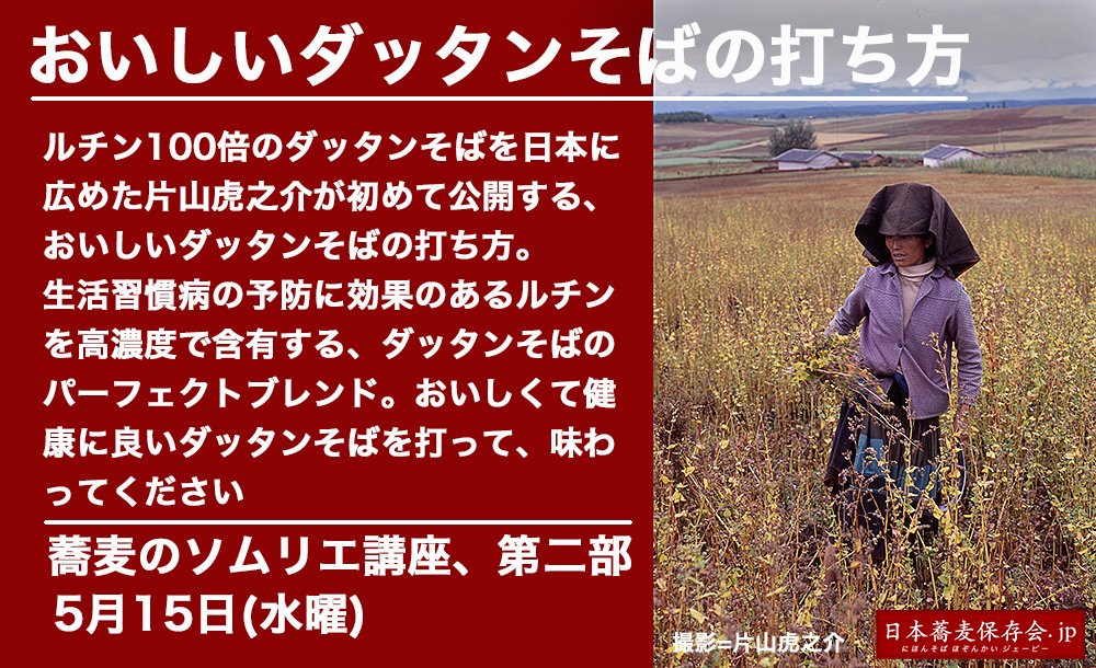 日本蕎麦保存会が主催するそば講座は、2007年から17年間、開催してきました。これまでに開催した講座の一部を、ご紹介します。日本そばについての、あらゆる知識、あらゆる打ち方をお伝えします。 東京、南青山で開催した講座の様子。福井在来のそばを打っていただきました 東京、銀座で開催した蕎麦のソムリエ講座の様子。一本棒丸のしの打ち方をお伝えしています 海外から、たくさんの方が参加してくださいます。日本蕎麦の本当のおいしさに、みなさん驚かれます 焼畑の講座も開催しました。なかなかできない、貴重な体験です 東京、築地で開催した講座の様子です 一人一人の方に、一枚ずつ、そば畑を持っていただいて、栽培体験をしました 講座の合間に、地元の温泉で。いやあ、極楽ですね 福井県で開催した、日本蕎麦伝統技能保持者の認定会です